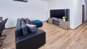 + Denná časť: Priestranná obývacia izba prepojená s kuchyňou a jedálenským kútom, s výstupom na slnečný balkón.