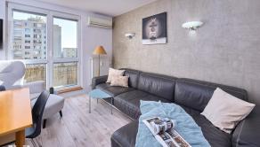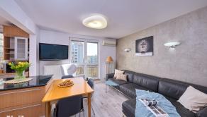 - Obývacia izba prepojená s kuchyňou, s východom na balkón
