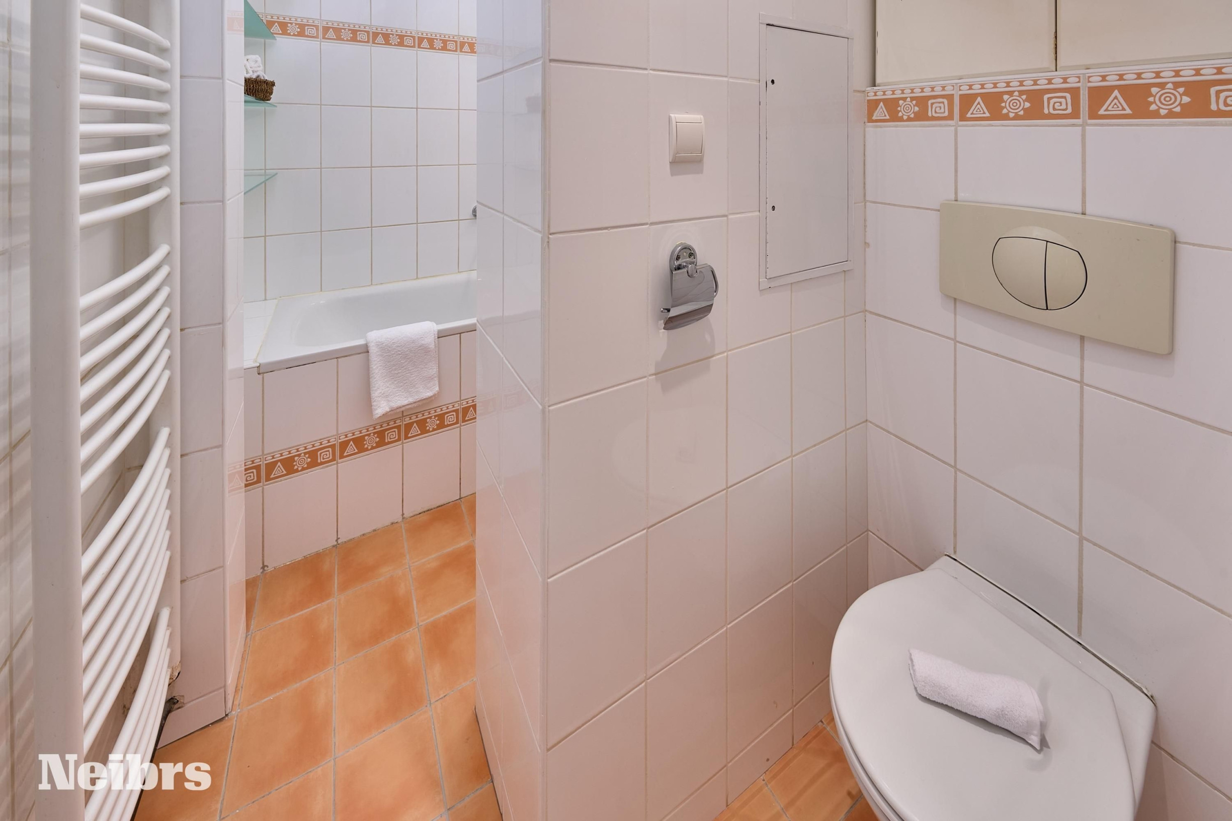 - Kúpeľňa prepojená s toaletou, ale opticky oddelená