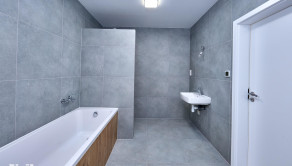 + Kúpeľňa: Kompletne zariadená sanitou – vaňa, sprchový kút, umývadlo, WC Geberit a elektrický bojler.