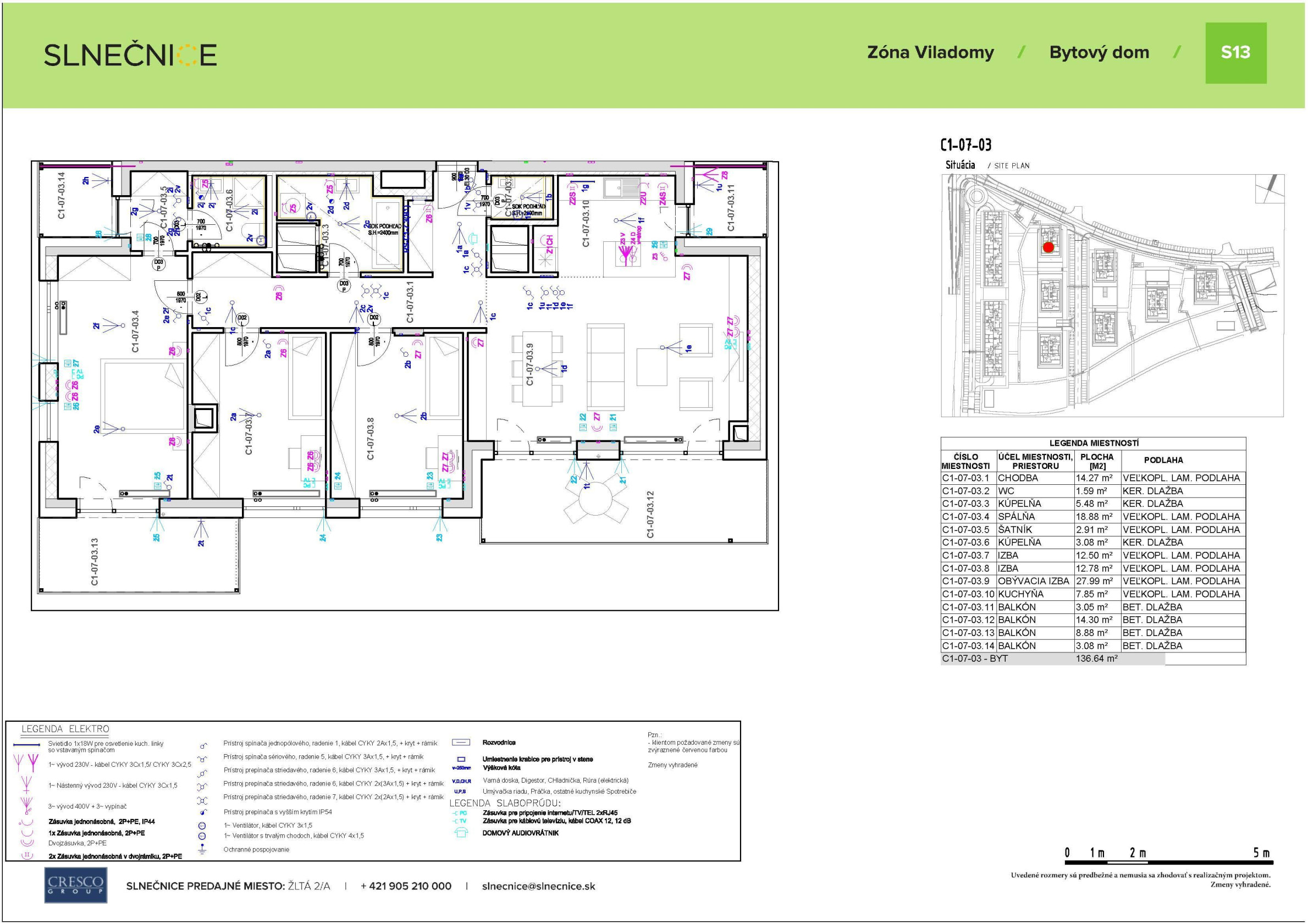 + úžitková plocha bytu: byt 107,33 m² + Balkón 14,33 m²+ Balkón 8,88 m² + Balkón 3,08 m² + 3,05 m² + kobka 3,4 m² (ide o jeden z najväčších bytov v tomto projekte)